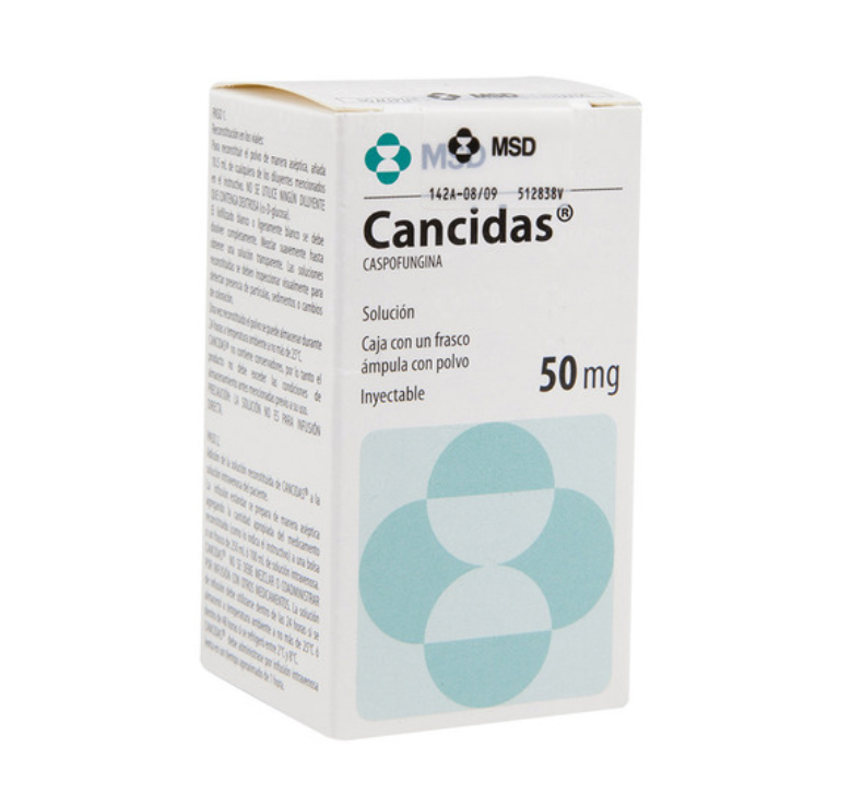 Descripción: Antifúngico (equinocandina). Mecanismo: Inhibe la síntesis de la pared celular fúngica (β-glucano). Uso: Candidiasis invasiva y aspergilosis.