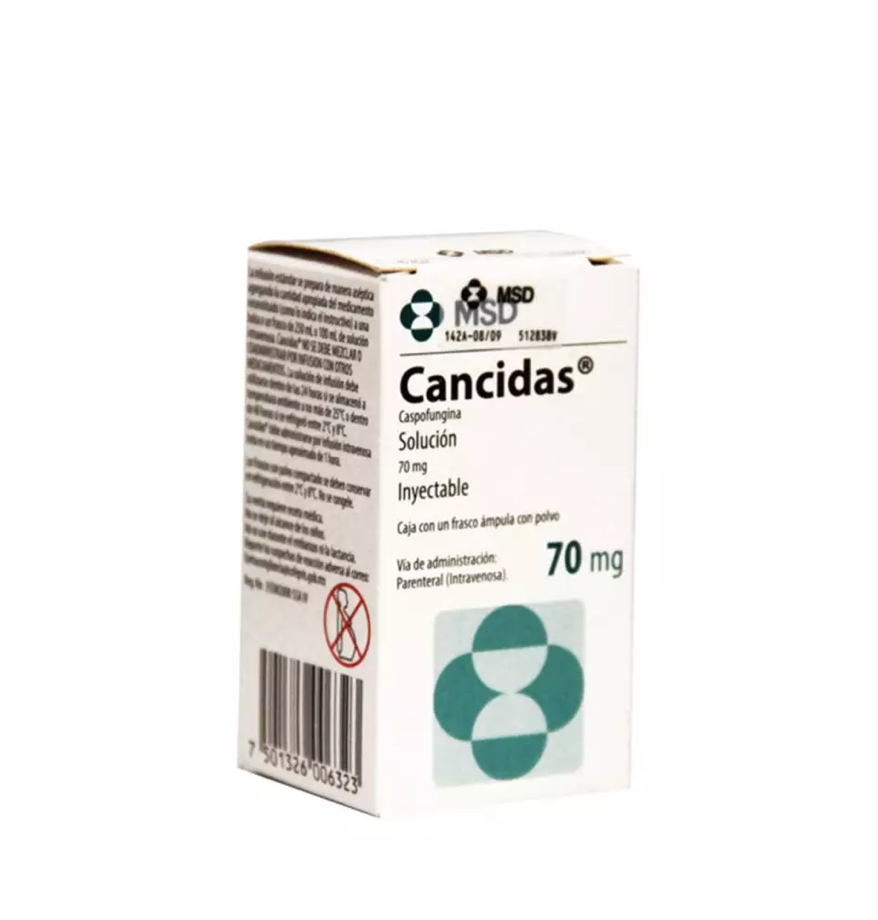Descripción: Antifúngico (equinocandina). Mecanismo: Inhibe la síntesis de la pared celular fúngica (β-glucano). Uso: Candidiasis invasiva y aspergilosis.