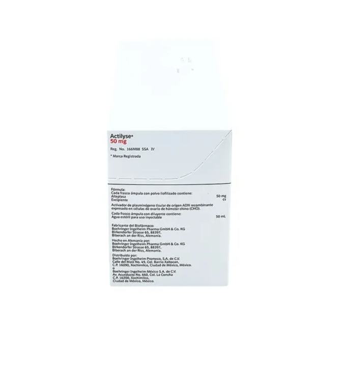 Descripción: Trombolítico. Mecanismo: Activa el plasminógeno a plasmina, que degrada la fibrina. Uso: Infarto agudo de miocardio, embolia pulmonar, accidente cerebrovascular isquémico.