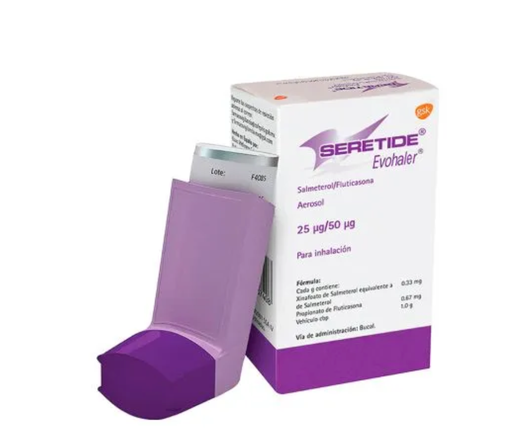 Descripción: Corticoide inhalado + beta-2 agonista de acción prolongada. Mecanismo: Anti-inflamatorio + broncodilatador. Uso: Asma y EPOC.