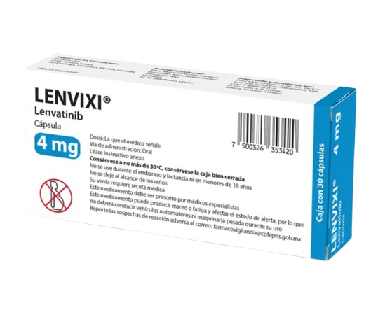 Descripción: Inhibidor multikinasa antitumoral. Mecanismo: Bloquea receptores tirosina quinasa. Uso: Cáncer de tiroides, riñón y hígado.